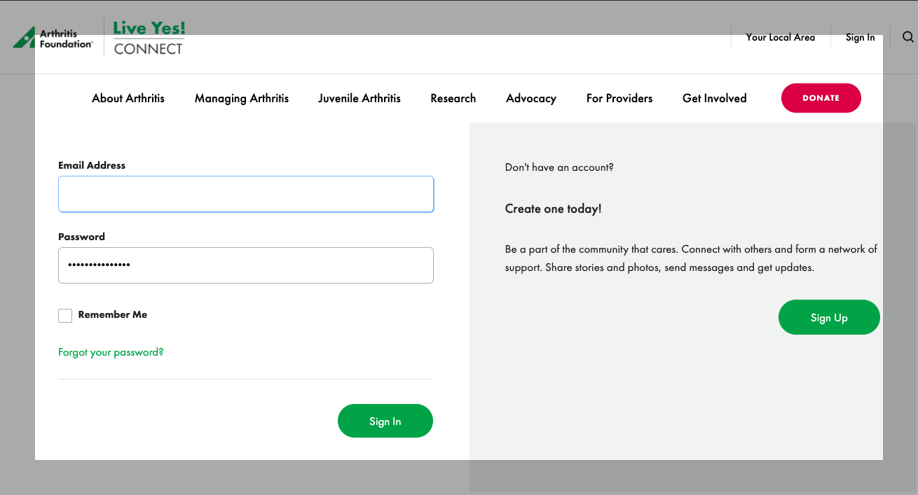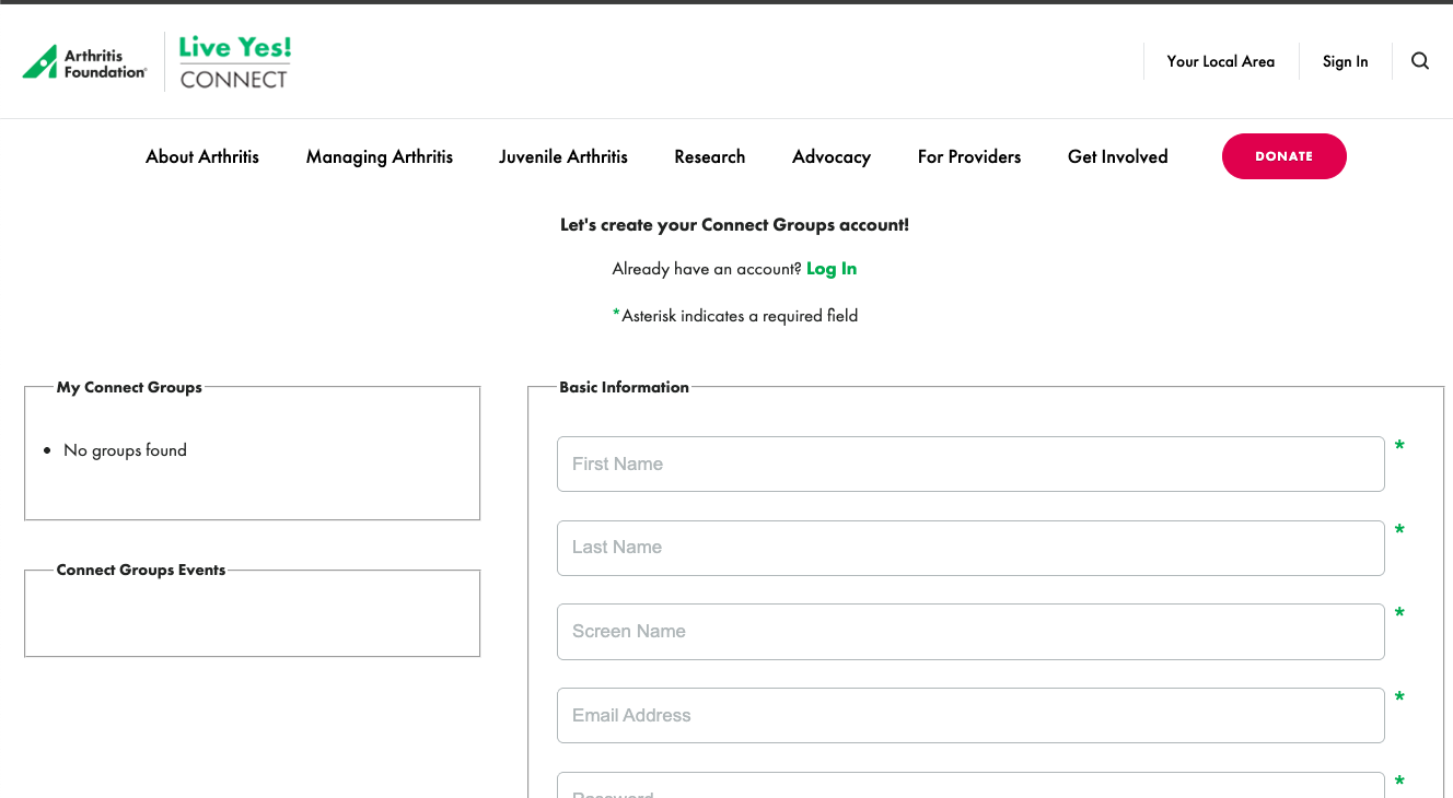 1) Go to this address: https://connectgroups.arthritis.org/registration/register